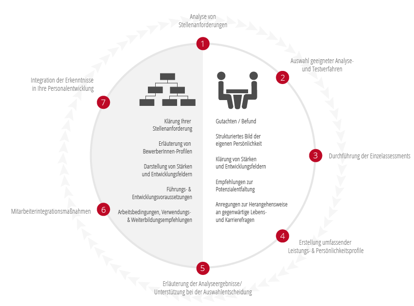 Wir evaluieren die Persönlichkeitsbeschaffenheit Ihrer BewerberInnen, ihre Leistungsfähigkeit ebenso wie ihren Leistungswillen
